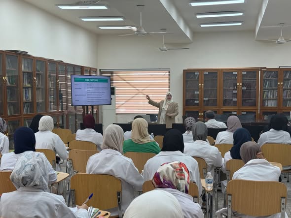 Under the patronage of the Dean of the College of Science for Women at the University of Baghdad, Prof. Dr. Sameera a Naji Khdim, the Department of Biology , in cooperation with the Psychological and Educational Counseling Unit, organized an educational workshop on breast cancer and the importance of early detection. The workshop was presented by Dr. Shaimaa Ismail Kazem, with the attendance of several faculty members, students, and staff of the college.