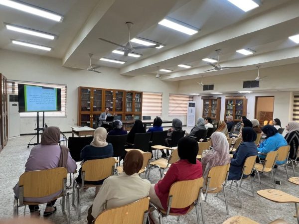 Under the patronage of the Dean of the College of Science for Women, Professor Dr. Sameera Naji Khdim, the Psychological Counseling and Educational Guidance Unit, in cooperation with the Department of Biology Sciences, organized a workshop entitled “Drugs and Methods of Prevention.” The workshop was presented by Dr. Salah Khairi in the department’s library hall, with the attendance of a number of faculty members, staff, and students.