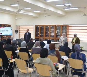 Under the patronage of the esteemed Dean of the College of Science for Women at the University of Baghdad, Prof. Dr. Sameera Naji Khdim , the Psychological Counseling and Educational Guidance Unit organized an educational scientific workshop titled “Challenges and Motivators of Studying in the Age of Informatics.” The workshop was presented by Dr. Wasan Mohsen Hassan and Dr. Ragaa Murayh Mohammed, with the attendance of faculty members and students of the department.