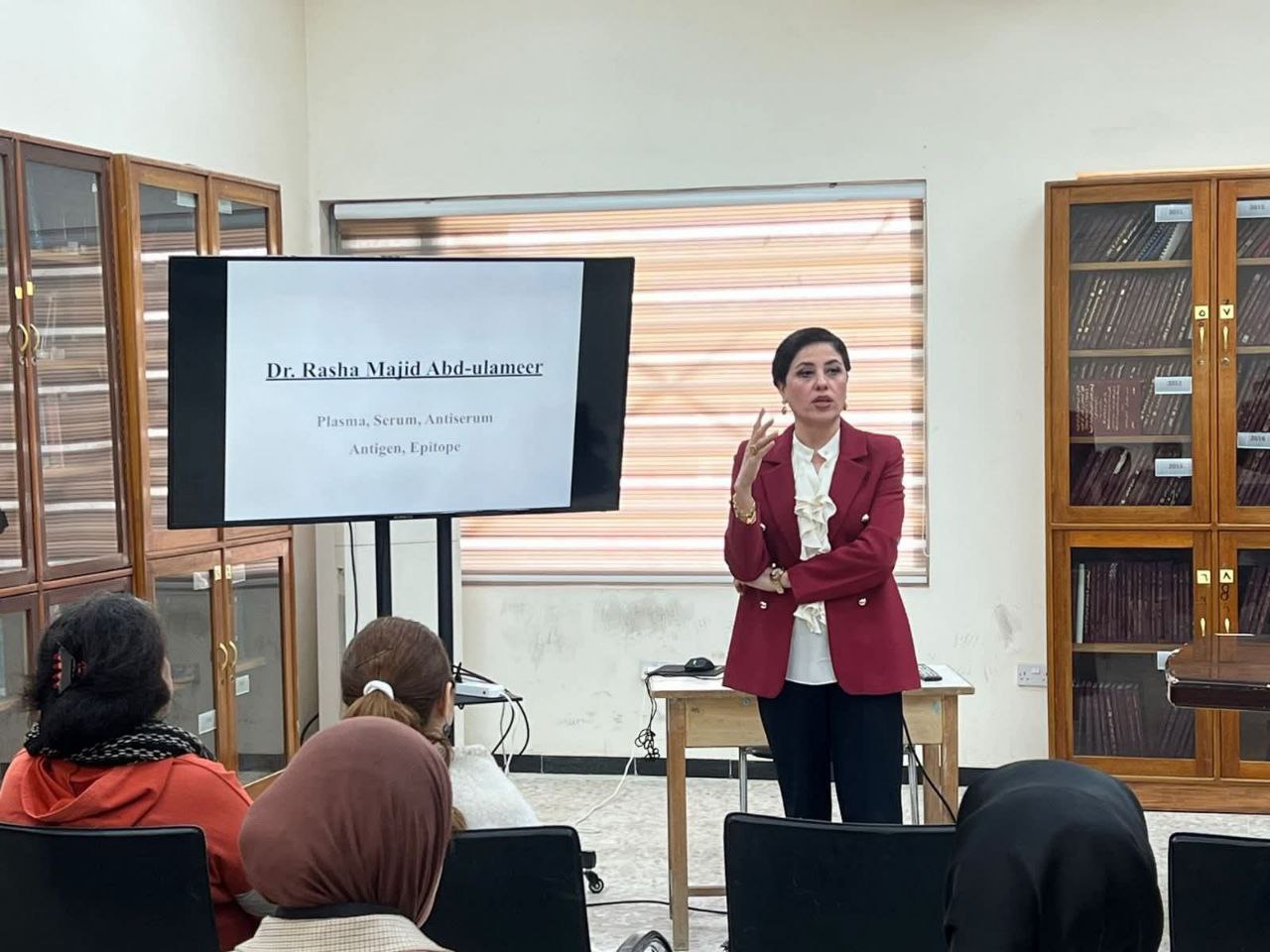 Under the patronage of the Dean of the College of Science for Women at the University of Baghdad, Professor Dr. Sameera Naji Khdim , the Continuing Education Unit at the College of Science for Women/University of Baghdad organized a specialized scientific workshop entitled “Precipitation Test: Types, Mechanisms, Principles, and Related Immunological Diseases,” presented by Dr. Rasha Majid Abdulameer and Dr. Shaimaa Ismail Kazem.