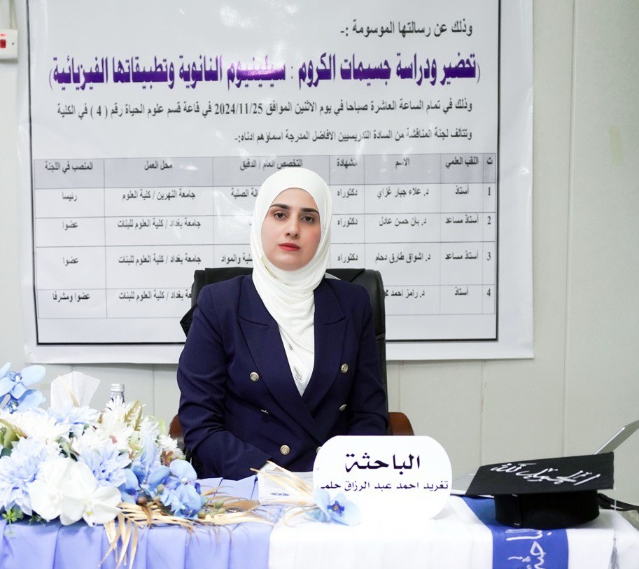 College of science for women/University of Baghdad examined the thesis entitled (synthesis and study Cr:Se nanoparticles for sensing applications )
