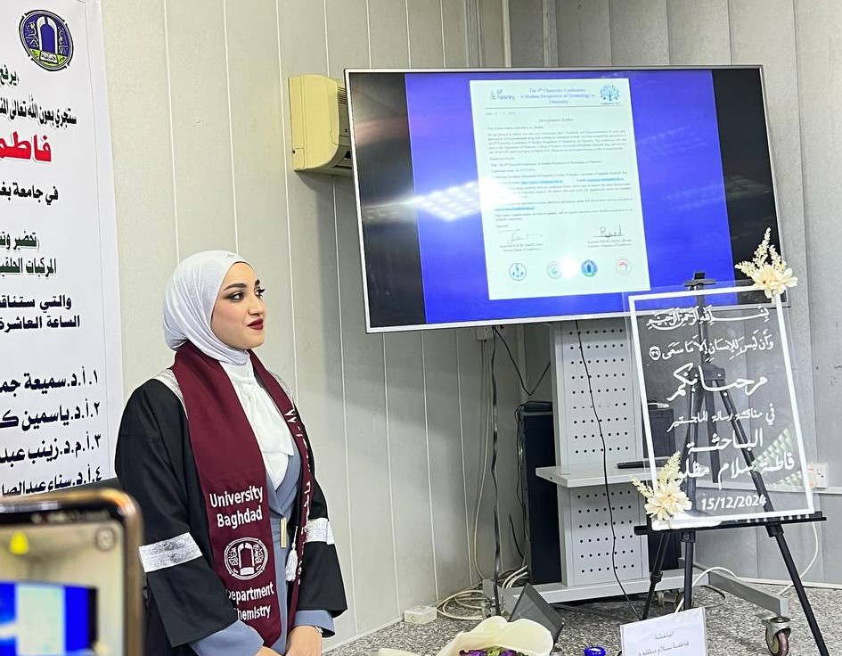 The master’s thesis, ” Synthesis, Characterization Antimicrobial and Antioxidant Study of SomeNew Hetrocyclice Compounds Derived Acetazolamide ” was the topic of discussion at the College of Science for Girls at the University of Baghdad. Student:Fatima Salam Madhloom