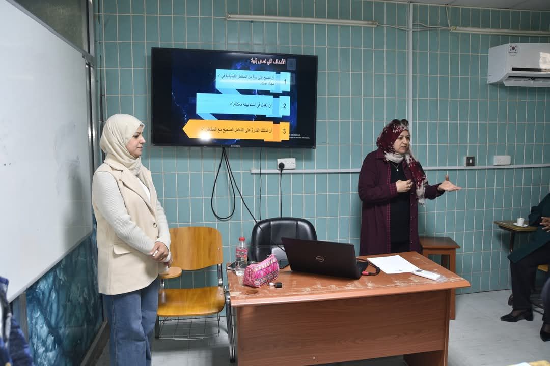 Under the patronage of Dr. Sameera Naji Khdim, Dean of the College of Science for Women , the Continuing Education Unit, in collaboration with the Department of Chemistry, organized a workshop titled “First Aid for Laboratory Accidents.” The workshop was presented by Dr. Nafisa Jabar Kazem, Mrs.Iman Adnan Mohammed, and Mrs. Rukia Hashim Abdul Ghani.