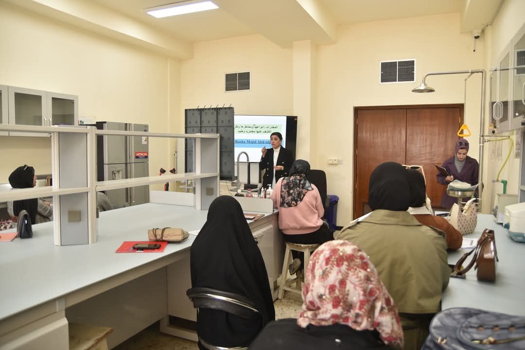 Under the patronage of Dr. Sameera Naji Khdim, Dean of the College of Science for Women, the Department of Physics, in collaboration with the Continuing Education Unit, organized a workshop titled “Drugs: Their Types, Risks, and Laboratory Detection Methods.” The workshop was presented by Dr. Rasha Majid Abdul Amir, Dr. Shaima Ismail Kazem, and Ms. Zainab Omaran.