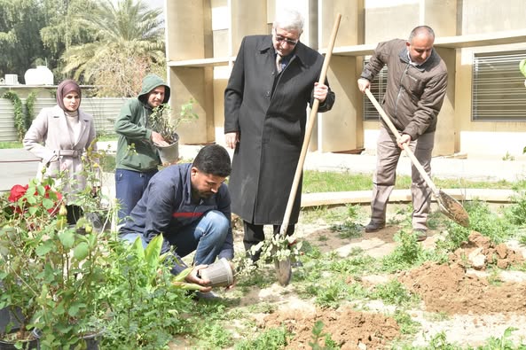 Under the patronage of the Dean of the College of Science for Women , Prof. Dr. Sameera Naji Khdim, the Biology Sciences Department organized the Tree Planting Day campaign with the aim of promoting environmental awareness and contributing effectively to improving the local environment. A number of faculty members, in addition to the college’s affiliates and students, participated in the campaign, where many trees and plants were planted in the garden surrounding the department. Species of trees and plants were chosen that are compatible with the local environment and contribute to improving air quality and regulating temperatures. This initiative comes within the framework of a series of environmental activities that the college seeks to organize periodically, with the aim of motivating female students to participate effectively in preserving the environment. The campaign also falls within awareness efforts aimed at enhancing the importance of tree planting in confronting climate change, and its major role in preserving biodiversity, in addition to supporting sustainable development goals, especially with regard to achieving environmental balance and developing environmental awareness among future generations