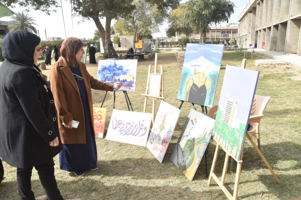 The opening was attended by the Dean of the College, Prof. Dr. Sameera Naji Khdim, the Assistant Dean for Administrative Affairs, Prof. Dr. Adel Talib Hussein, the Head of the Artistic Activities Division at the University of Baghdad, Dr. Hakim Jassim, the Head of the Department of Biology Sciences, and a group of faculty members, staff, and students of the college.