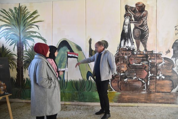 Under the patronage of the honorable Dean of the College of Science for Women , the Psychological Counseling and Educational Guidance Unit, in cooperation with the Student Activities Unit, organized the “Andalusian Day” Festival inspired by the magic of Andalusian decoration in all the paintings that depict events in the era of the flourishing of arts and sciences, and included the opening of an artistic mural in the Department of Biology Sciences that represents Baghdad’s heritage and artistic landmarks, and combines modernity with the fragrance of history, to be a living image of Baghdad’s authentic culture.