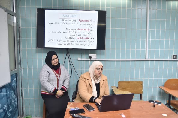 The workshop aimed to shed light on nanostructures and their importance in modern sciences and their unique physical properties such as small size and large surface interaction. The research applications of nanostructures in various fields such as medicine, environment and energy were reviewed. On the other hand, the latest methods used in manufacturing nanomaterials were discussed and how to apply these techniques in scientific research to achieve progress in modern industries, in addition to the role of nanostructure research in improving the performance of materials and developing new technologies that contribute to the advancement of many industries such as medicines, electronics and renewable energy