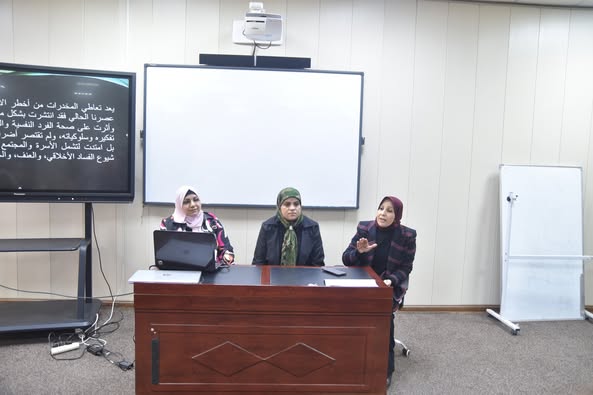 Under the patronage of Professor Dr. Sameera Naji Khdim, Dean of the College of Science for Women, the Educational Guidance and Psychological Counseling Unit, in collaboration with the Computer Science Department, organized a workshop titled “The Impact of Drugs on the Mental and Psychological Health of University Students.” The workshop was presented by Assistant Dean for Scientific Affairs and Student Affairs, Dr. Yousra Abdul-Sahib Seifuddin, Dr. Raja’ Muraiah, Head of the Computer Science Department, and Dr. Hind Salem Kashkoul. The event was held in the Smart Hall of the department, with the participation of faculty members and students from the college and the department.