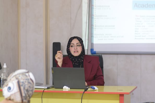 The workshop aimed to enhance the English writing skills of female students and researchers. This was achieved through a series of training activities focused on improving English grammar, refining writing style by using correct and clear linguistic structures, and expanding vocabulary to integrate it effectively into writing. Emphasis was also placed on organizing ideas coherently to ensure logical and smooth progression in written texts. Participants practiced techniques for presenting ideas concisely and clearly while maintaining accuracy of meaning. additionally, students were guided on how to properly cite sources in academic writing.