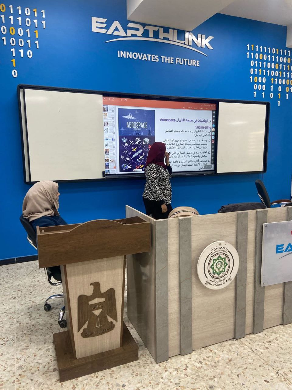 Under the patronage of the Dean of the College of Science for Women, Professor Dr. Sameera Naji Khdim, the Department of Mathematics , in cooperation with the Division of Scientific Affairs, organized a workshop entitled “Mathematics and Engineering”. The workshop was presented by Ms. Huda Imad Al-Din Jameel, Ms. Fatima Ahmed Shehab, and Ms. Sama Mohammed Ezzat.