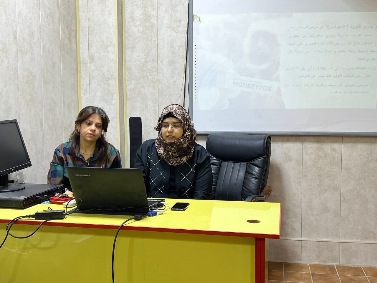 Under the patronage of the Dean of the College of Science for Women, Professor Dr. Sameera Naji Khdim, the Continuing Education Unit organized a workshop entitled “Monkeypox: Modes of Transmission and Prevention.” The session was presented by Ms. Huda Imad Al-Din Jameel, Ms. Fatima Ahmed Shihab, and Ms. Sama Mohammed Ezzat.The workshop aimed to enhance public awareness of emerging diseases and provide participants with accurate information about their causes and methods of control. It included a historical overview of monkeypox and clarified the differences between it and traditional smallpox in terms of causative agents, symptoms, and modes of transmission.The lecturers explained that monkeypox is a rare viral disease transmitted from animals to humans. It was first recorded in Africa, but recent years have seen increasing cases in countries outside the continent due to international travel and direct contact without precautionary measures. The workshop offered a detailed explanation of the disease’s transmission routes, including direct contact with bodily fluids or skin lesions of infected individuals, handling contaminated objects, and the possibility of respiratory droplet transmission in cases of close contact.The workshop emphasized the importance of public awareness in preventing the spread of the disease. Preventive measures highlighted included avoiding direct contact with infected individuals or animals suspected to be carriers, maintaining personal hygiene, wearing protective gear in high-risk environments, and promptly reporting suspected cases to the relevant health authorities.Additionally, the workshop reviewed global efforts to monitor and contain the disease, including awareness campaigns, vaccination programs in some countries, and adherence to health guidelines. It stressed the importance of avoiding misinformation and rumors circulating on social media platforms.This workshop aligns with the third goal of the United Nations Sustainable Development Goals (SDGs), which aims to “ensure healthy lives and promote well-being for all at all ages.”