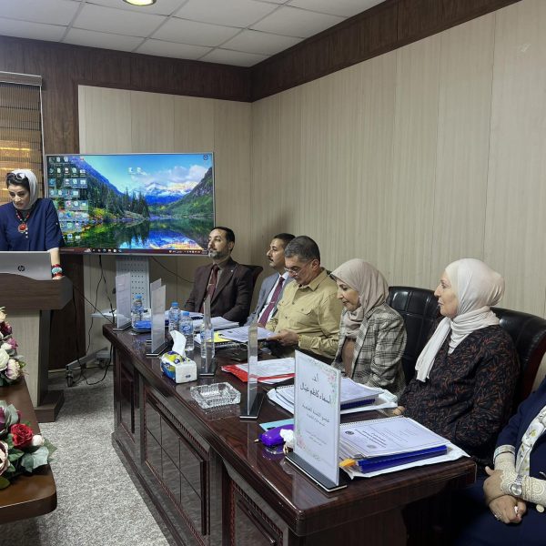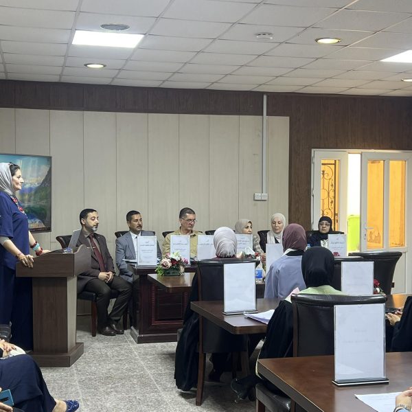 Under the patronage of the Dean of the College of Science for Women, Professor Dr. Sameera Naji Khdim, and in an exceptional academic atmosphere reflecting the culmination of years of study, research, and perseverance, the Scientific Affairs Unit, in collaboration with the Continuing Education Unit, organized a symposium to discuss outstanding graduation projects. The event was held on the morning of Wednesday, May 28, 2025, in the Hospitality Hall, in the presence of the Dean, the Assistant Dean for Scientific and Student Affairs, Dr. Yusra Abdul Sahib, along with the heads of academic departments, faculty members, college staff, and students.The symposium commenced with a welcoming speech delivered by the Assistant Dean for Scientific Affairs, in which she praised the students’ efforts in preparing research of a high academic standard. She emphasized that this academic activity is one of the foundational pillars reflecting the quality of education and research at the college and contributes significantly to preparing students for future engagement in research and academic specialization.She also expressed her pride in the scientific caliber of the college’s students and acknowledged the significant role of supervising faculty members in guiding the students and supporting them in producing rigorous research projects.The discussion session featured research projects from various scientific departments, including Biology, Chemistry, Physics, Mathematics, and Computer Science. The topics presented encompassed both applied and theoretical research and addressed contemporary scientific issues of local and global relevance, such as biotechnology applications, water treatment, algorithm design, mathematical modeling, and renewable energy.The research presentations were distinguished by their precision, adherence to scientific methodology, and comprehensive summaries of objectives and findings. The students presented their conclusions with scientifically grounded responses during discussions with a committee composed of specialized faculty from different departments. The committee members commended the scientific level, analytical skills, and presentation abilities demonstrated by the students.At the conclusion of the symposium, the students with distinguished research projects were honored with appreciation awards in recognition of their scholarly efforts and to motivate their peers in subsequent academic years. The college administration also extended its gratitude to the academic and administrative staff who contributed to supporting the students and enhancing their academic and scientific standing.The outcomes of this symposium align with the fourth goal of the Sustainable Development Goals (SDGs), which focuses on ensuring quality education, as well as the fifth goal, which emphasizes empowering women and promoting their participation in scientific fields.