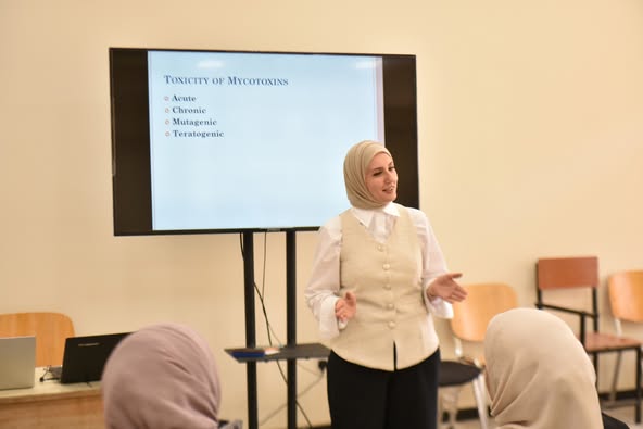 Furthermore, the course shed light on the adverse health effects of mycotoxins on humans, particularly on reproductive health, as they may impact fertility and hormonal balance and increase the risk of congenital malformations or pregnancy loss. The discussion also addressed the challenges faced by health and food institutions and presented strategies to reduce the spread of mycotoxins and strengthen food security.